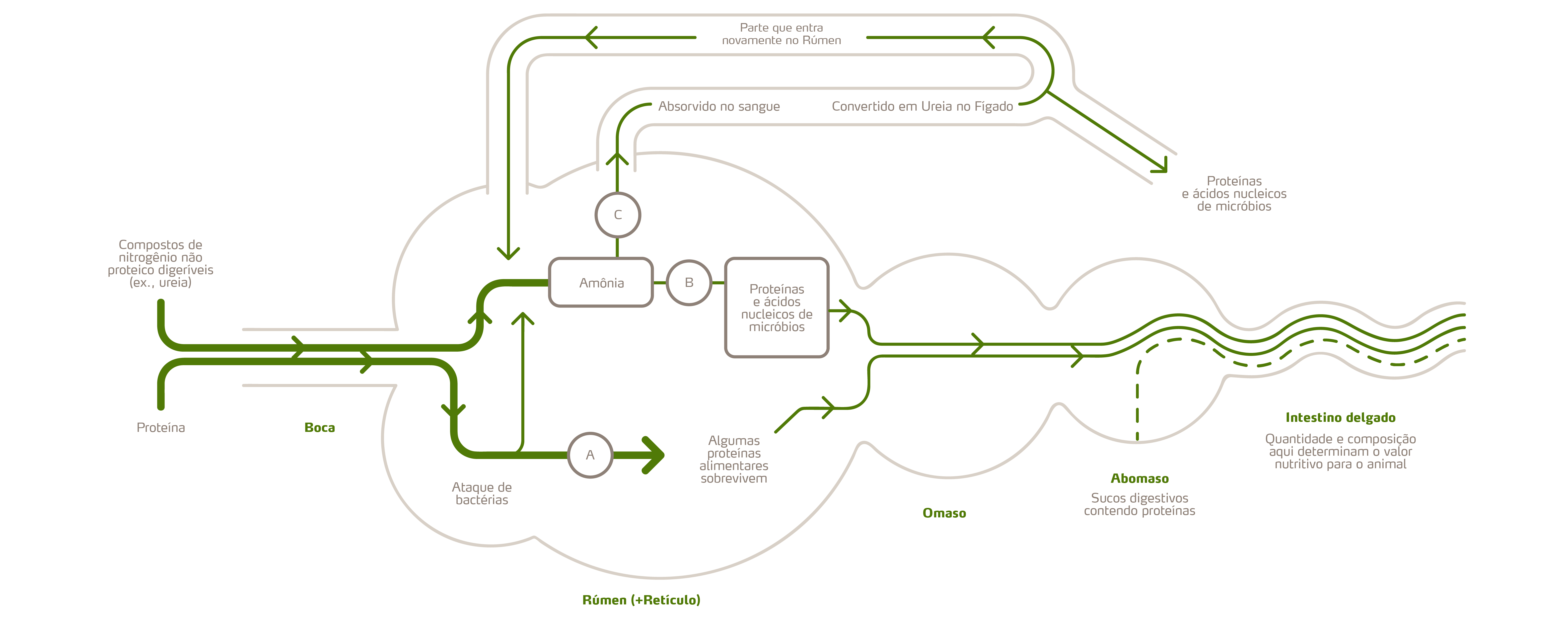 Ruminantes podem usar NNP para sintetizar proteínas microbianas com alto valor biológico. NNP é uma alternativa eficiente para proteínas. A proteína solúvel deve ser balanceada nas rações de ruminantes para permitir o máximo crescimento microbiano e, assim, a síntese de proteína microbiana.